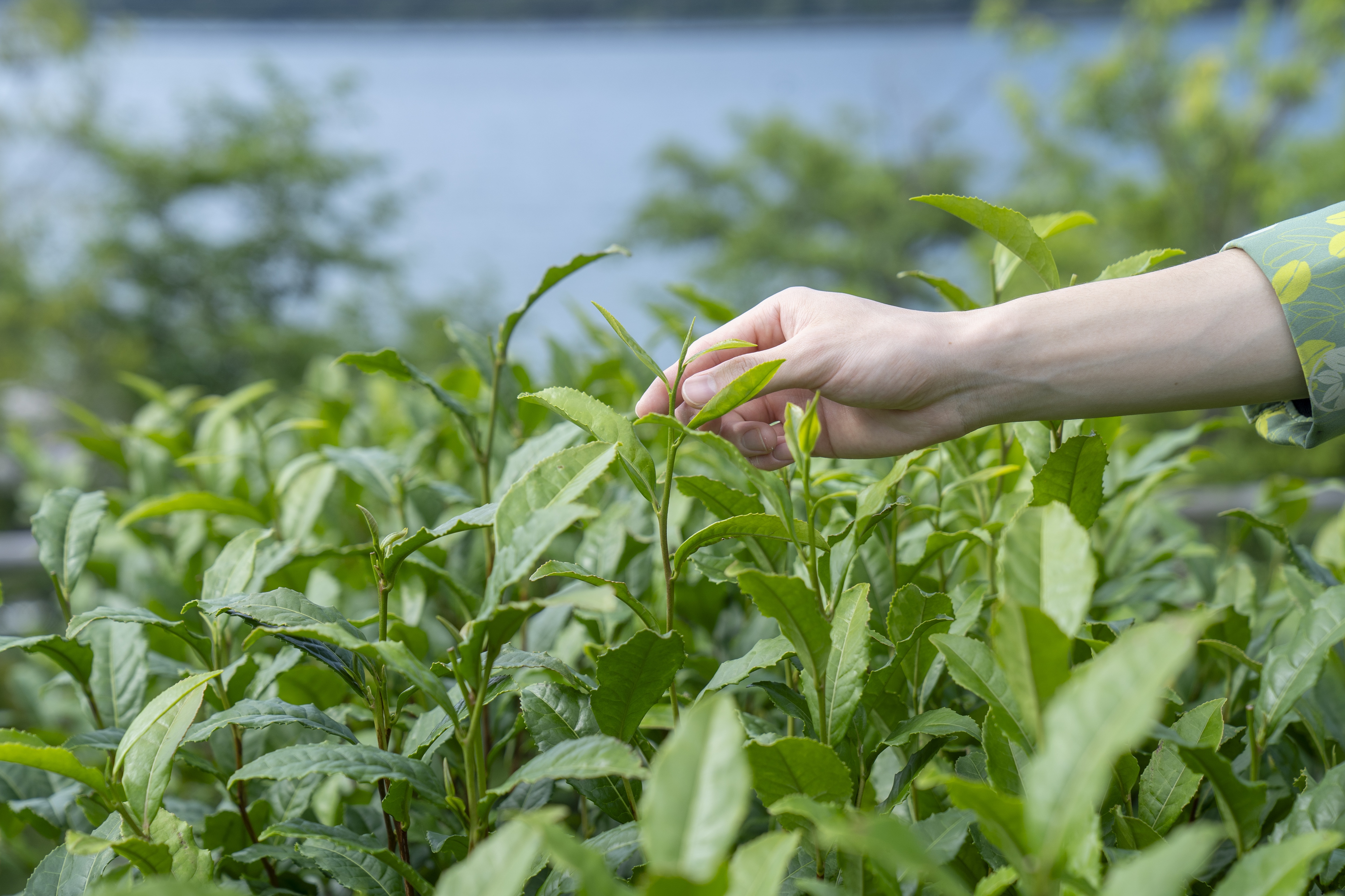 雄大な浜名湖を望む『界 遠州』には、スタッフが並々ならぬ情熱を注いで育ててきた「つむぎ茶畑」があります。
