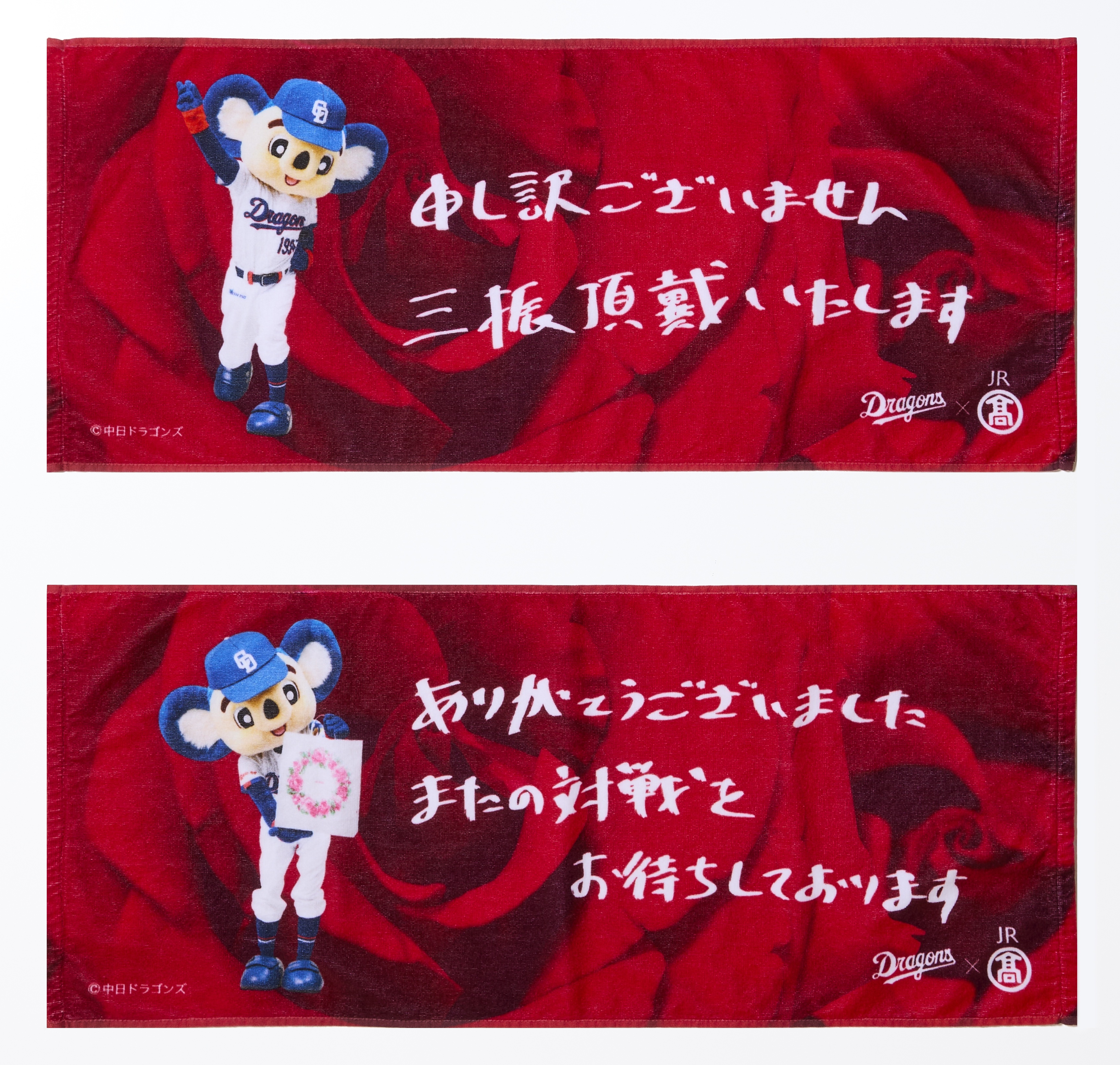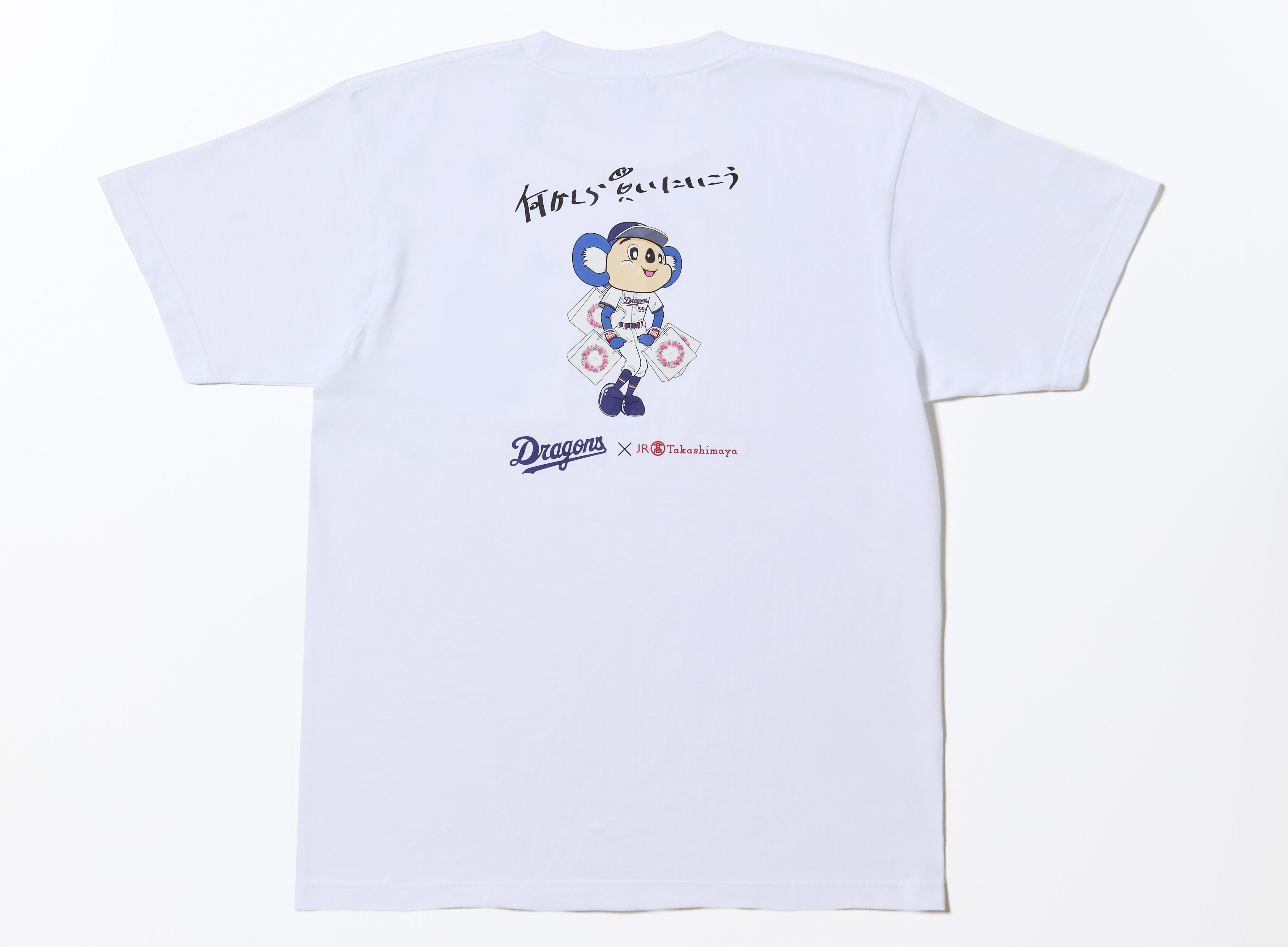ジェイアール名古屋タカシマヤとドアラがコラボした限定Tシャツ「何かしら買いにいこう」3,630円や、シュールなメッセージが可愛いタオル「申し訳ございません 三振頂戴いたします」「またの対戦をお待ちしております」各2,420円も、ここでしか買えない限定アイテムで争奪戦必至!