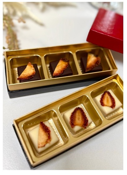 ビターとホワイトの3粒セットで、自分へのご褒美にもぴったりな贅沢な味わいです。