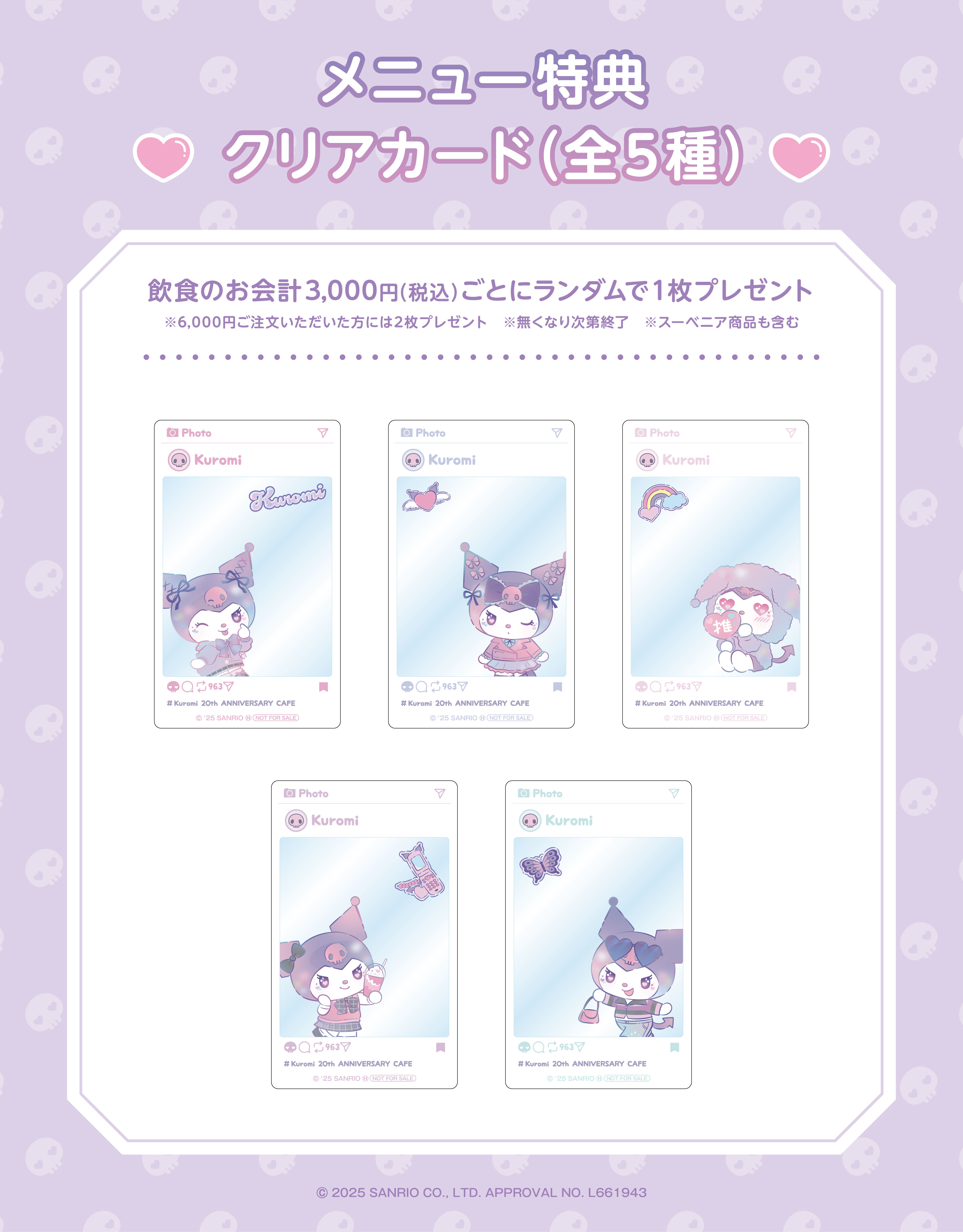 飲食会計が3,000円以上になると、「クリアカード(全5種)」をランダムで1つプレゼント。※無くなり次第終了