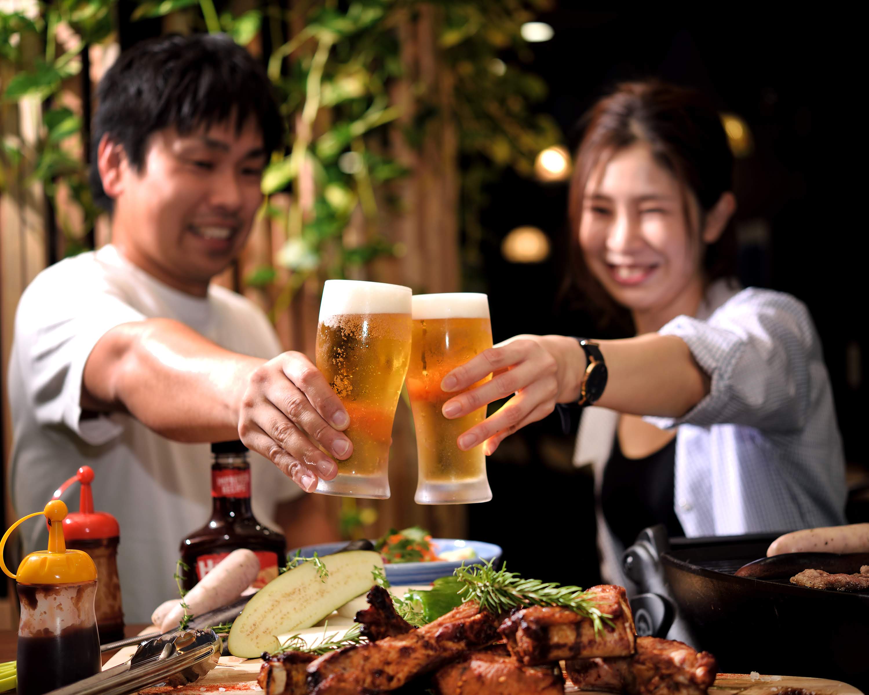 「BBQサカバコース」は、BBQの醍醐味である 自分たちで焼く楽しさと、居酒屋のゆったり過ごす時間の両方を満喫できるハイブリッドプラン。