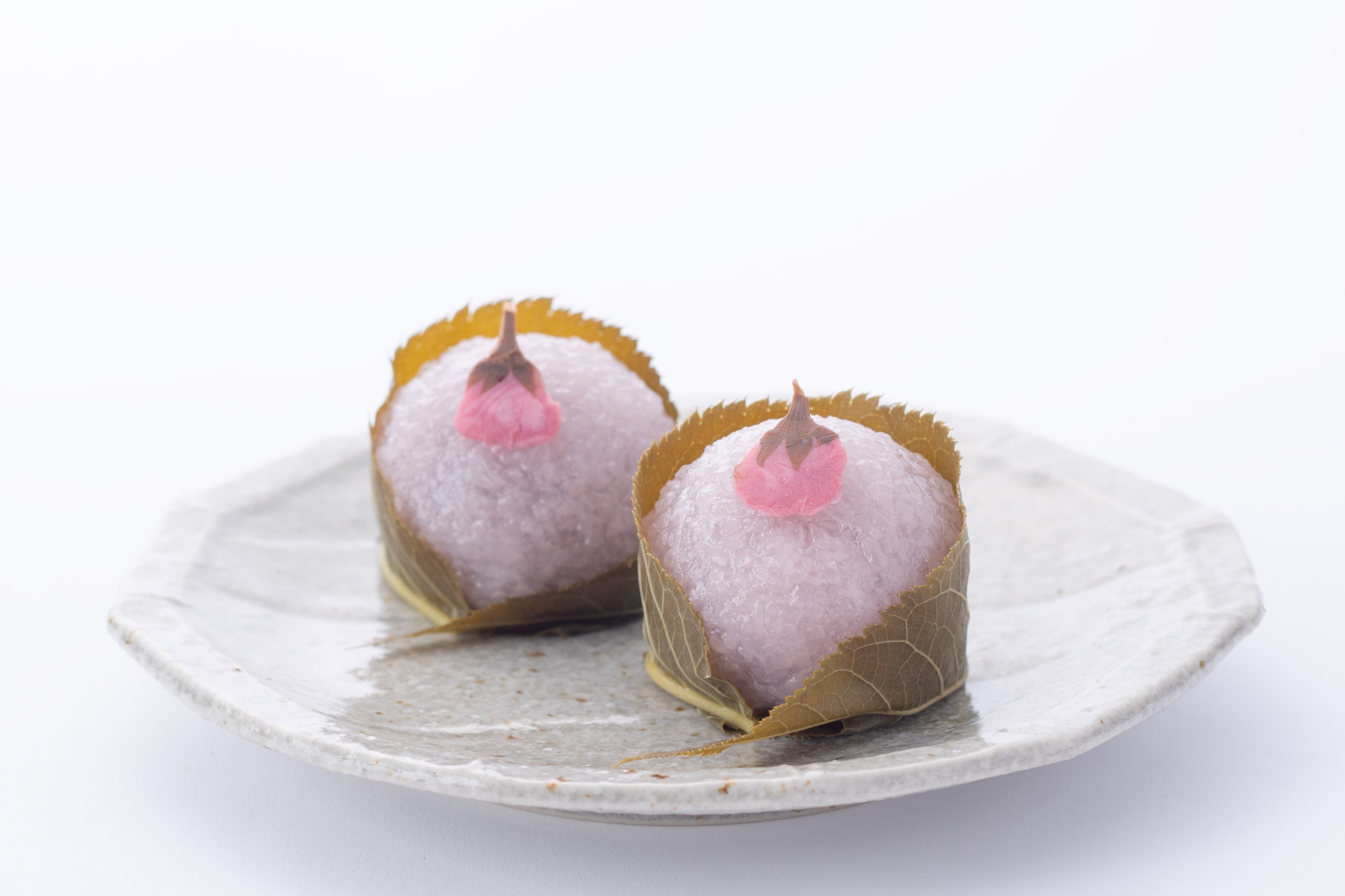 道明寺餅でこしあんを包み桜葉を巻いた、見た目にも可愛らしい和菓子です。