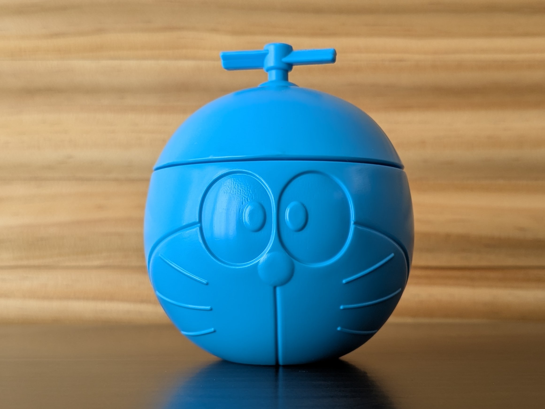 タケコプターを付けたドラえもん型の容器は、小物入れとして再利用がお勧め。