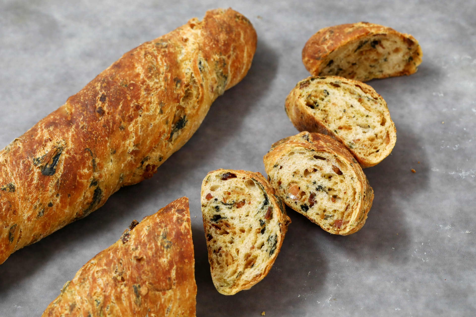 薄くスライスして食べると、外はパリッと中はしっとりとした食感が楽しめるとのこと。