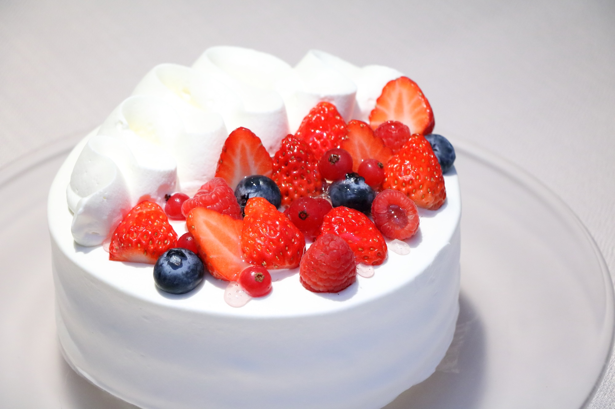 これまでは、ホテルの宿泊やレストラン利用の際にリクエストがあった人にだけ提供していたというこちらのホールケーキ。軽い仕上がりの生地に、脂肪分が低く、甘さ控えめのなめらかな生クリームを合わせています。国産いちごやラズベリー、ブルーベリーなどの甘酸っぱさも相まって、いくらでも食べられそう!
