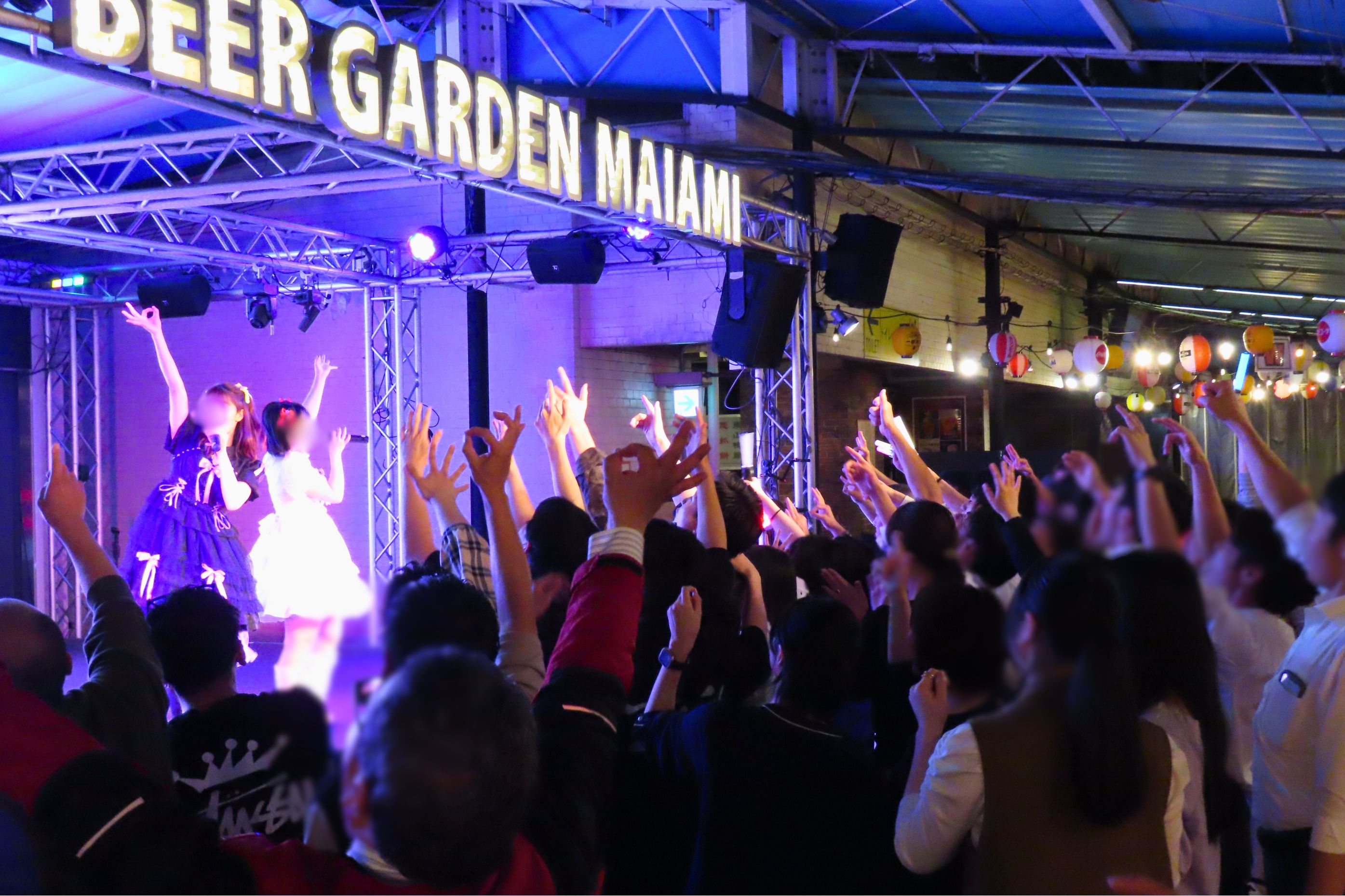 ビアガーデンで食事を楽しみながらライブも見られるという、ちょっと特別な夜を過ごせるのが「マイアミ」ならでは。
