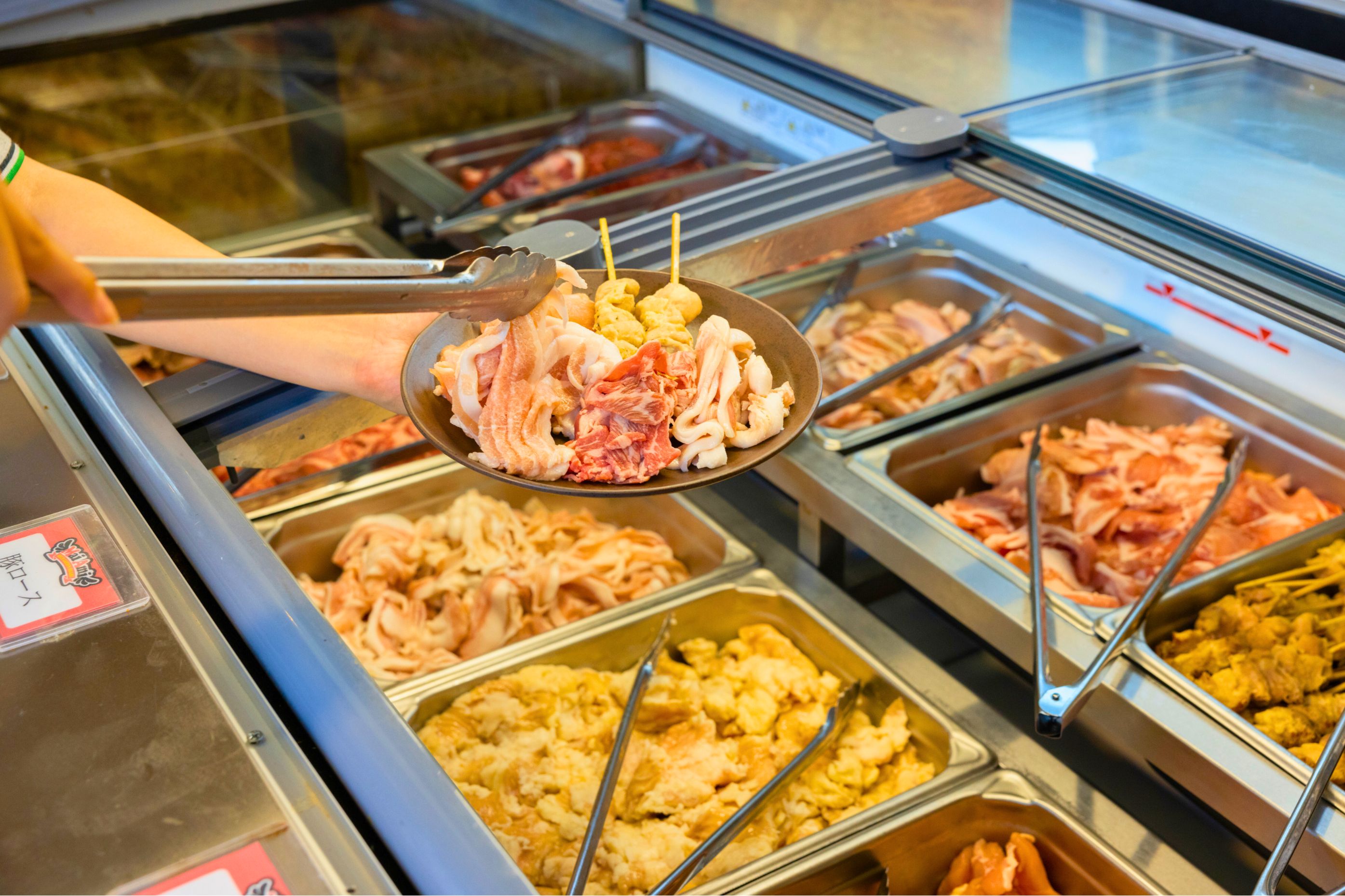 テーブルに設置されたマルチグリドルで食材を焼きながら楽しむスタイルで、焼き加減や味付けを自分好みに調整できるのが魅力です。