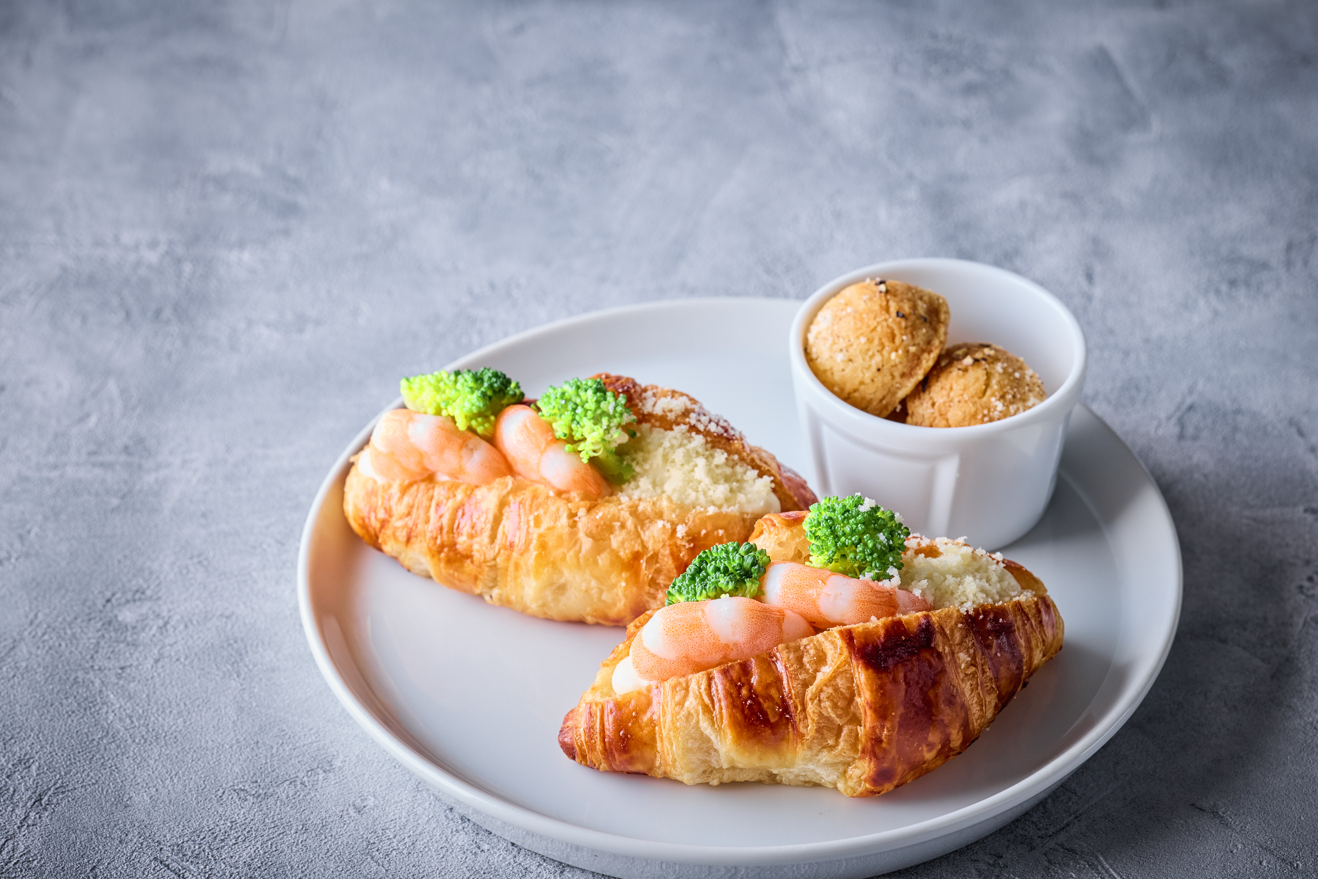 5段目には、グラタン風クロワッサンサンドやパルメジャーノ・レジャーノのサブレなど、香ばしい香りに包まれたセイボリーが並びます。