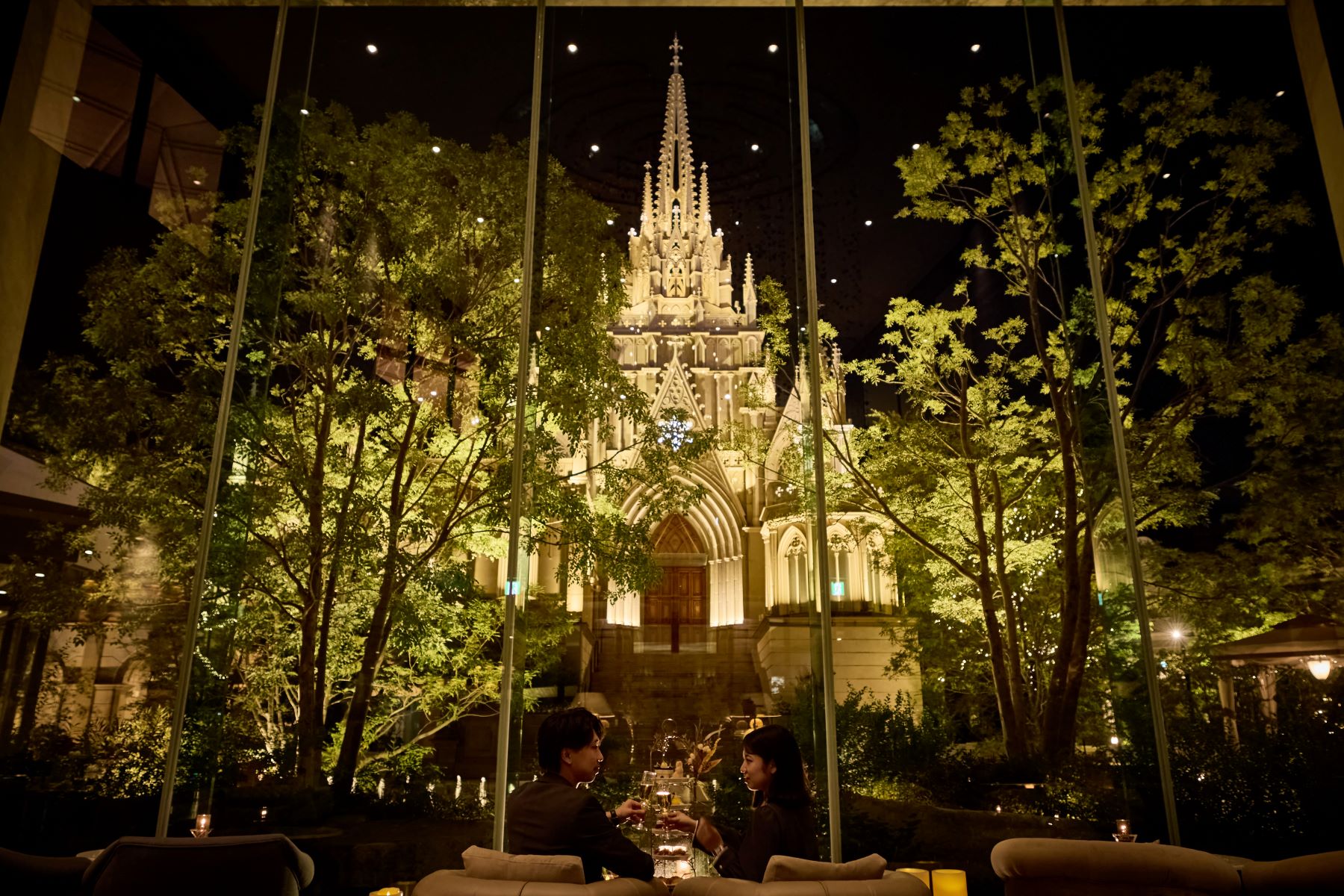 ライトアップされた大聖堂を眺めながら、日常を忘れる贅沢な時間を過ごせます。