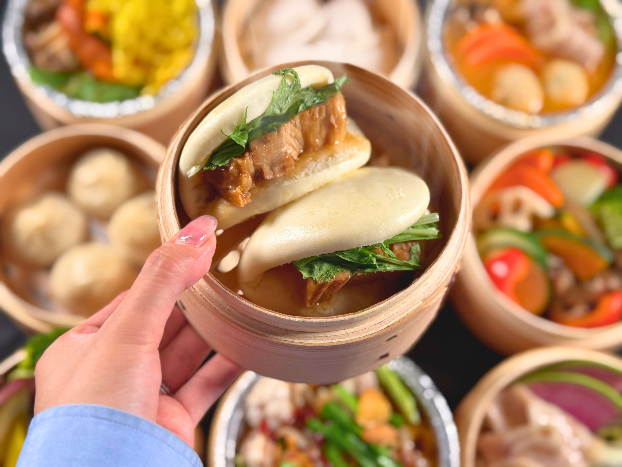 まず目を引くのが、約50種類の野菜・点心・惣菜が並ぶ食べ放題ビュッフェ。
