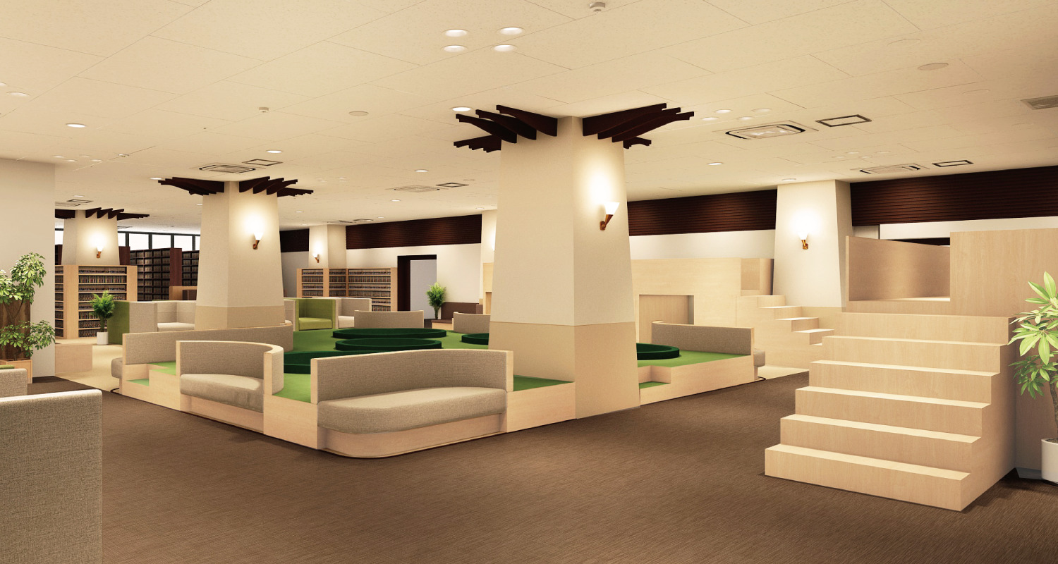 柔らかな照明とファブリック素材が取り入れられ、賑やかな施設でありながらも、どこか落ち着いて過ごせる雰囲気が印象的です。