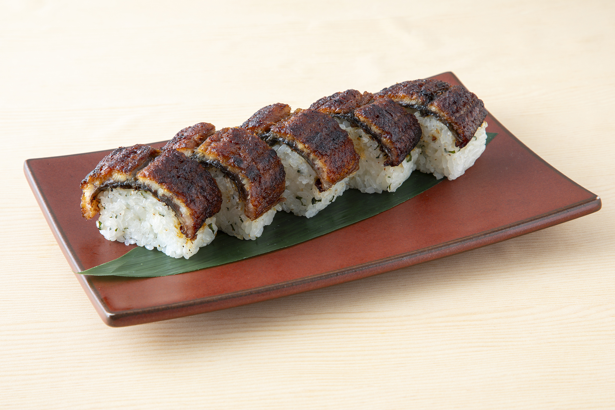 香ばしく焼き上げたうなぎと、大葉の香りがふわっと広がる酢飯を組み合わせた、見た目にも華やかな一品です。